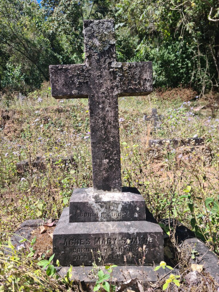 One other grave of importance in this cemetery was that of Aylmer Ffluke Martin that was constructed in 1926. Martin, who was known as Toby in the high range of yore, was a dynamic pioneer planter, who opened estates, did extensive survey of the region, served Finlay Muir & Co as its first labour manager and later helped establish a labour recruitment office in Tamil Nadu for the company to recruit Tamil workers for the plantations.